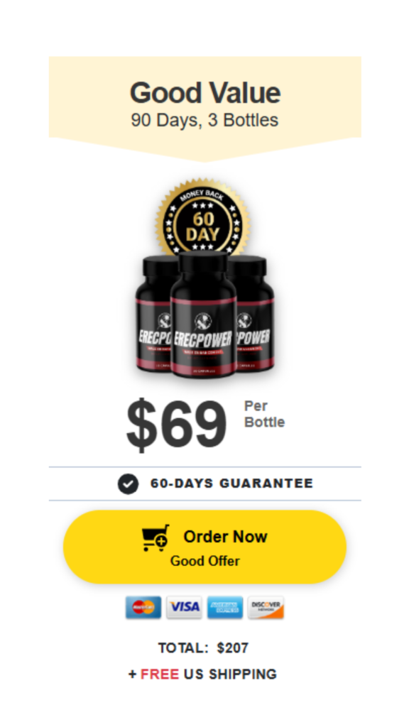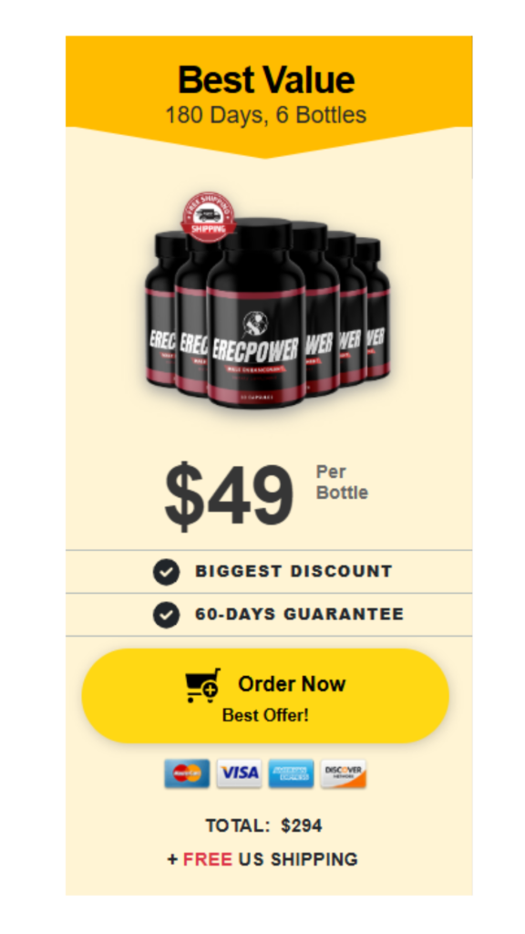 At this moment you can order Erecpower supplement for $780 OFF + FREE US Shipping. This is a Limited-Time Offer and it won’t be available for long.